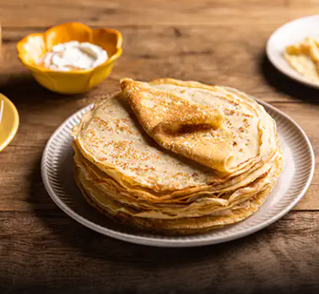Essa panquequinha bem francesa vai à mesa de muitas formas. No café da manhã, ganha mel ou queijo e pode ser servida no lugar do pão. No almoço, pode ser recheada com cogumelos refogados e servida com uma salada. Com geleia, vira até sobremesa.